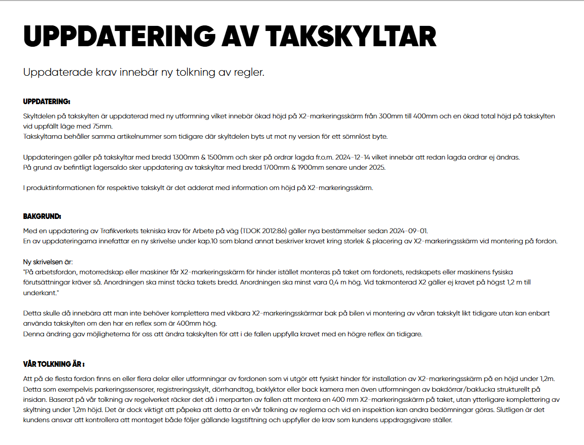Takskylten uppfyller trafikverkets krav på