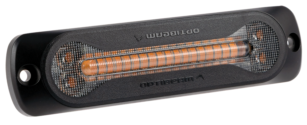 OPTIBEAM SX6 Dark - kraftfullt gult blixtljus med mörktonad lins och inbyggt orange positionsljus.