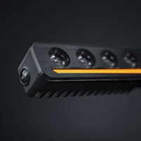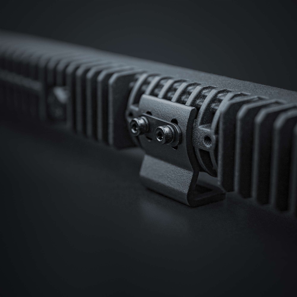 The Nuuk D-Line 40” LED bar has an extended beam pattern with a range of more than 580 meters and 19600 actual lumens in Xperience mode. It’s lightweight and slim, only 3,3 cm deep and 4,5 cm high, including the bracket. Nuuk D-Line is an ideal addition to your built-in high beam. The standard high beam is usually quite wide. With the D-Line, you’ll get more output in front for more range and better visibility. The result is a more comfortable, safer, and enjoyable driving experience. The E-mode is E-approved R148/149 with reference number 20, which is required on many European roads. Many drivers prefer this mode when driving in rainy or snowy weather, as it lessens the glare from water particles. With Xperience mode, you’ll discover a powerful output with maximum range and brightness. This LED bar has a slim black housing and lens, underlined by the glow of the white and amber position light. Nuuk D-Line is easy to use, lightweight, has a built-in relay, and the package includes everything you need for installation.