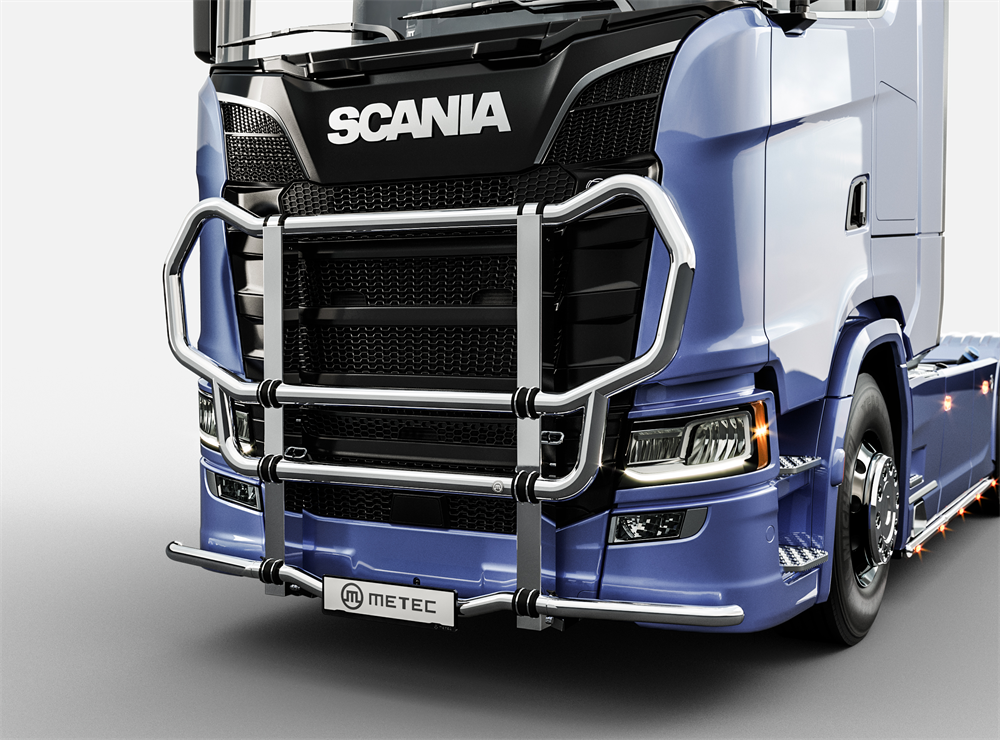 Frontskydd, "Älgstaket" från METEC. Tillverkad av rostfritt stål och modellanpassad för snabb och enkel installation.