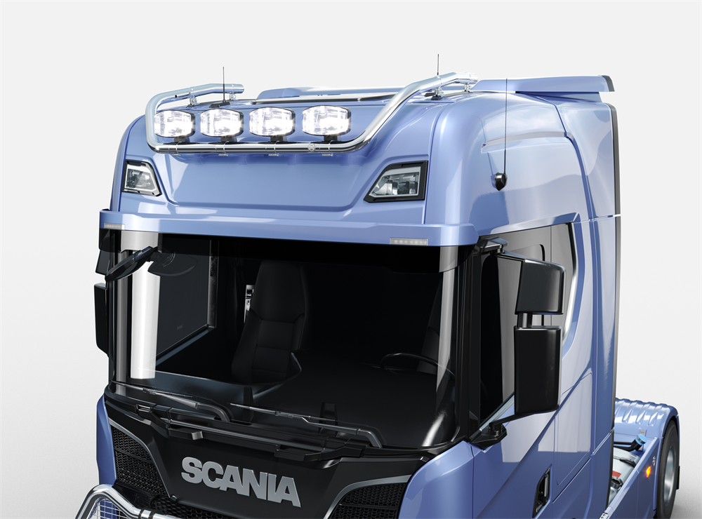4 fäste för extraljus. Maxbredd på lampor 245mm